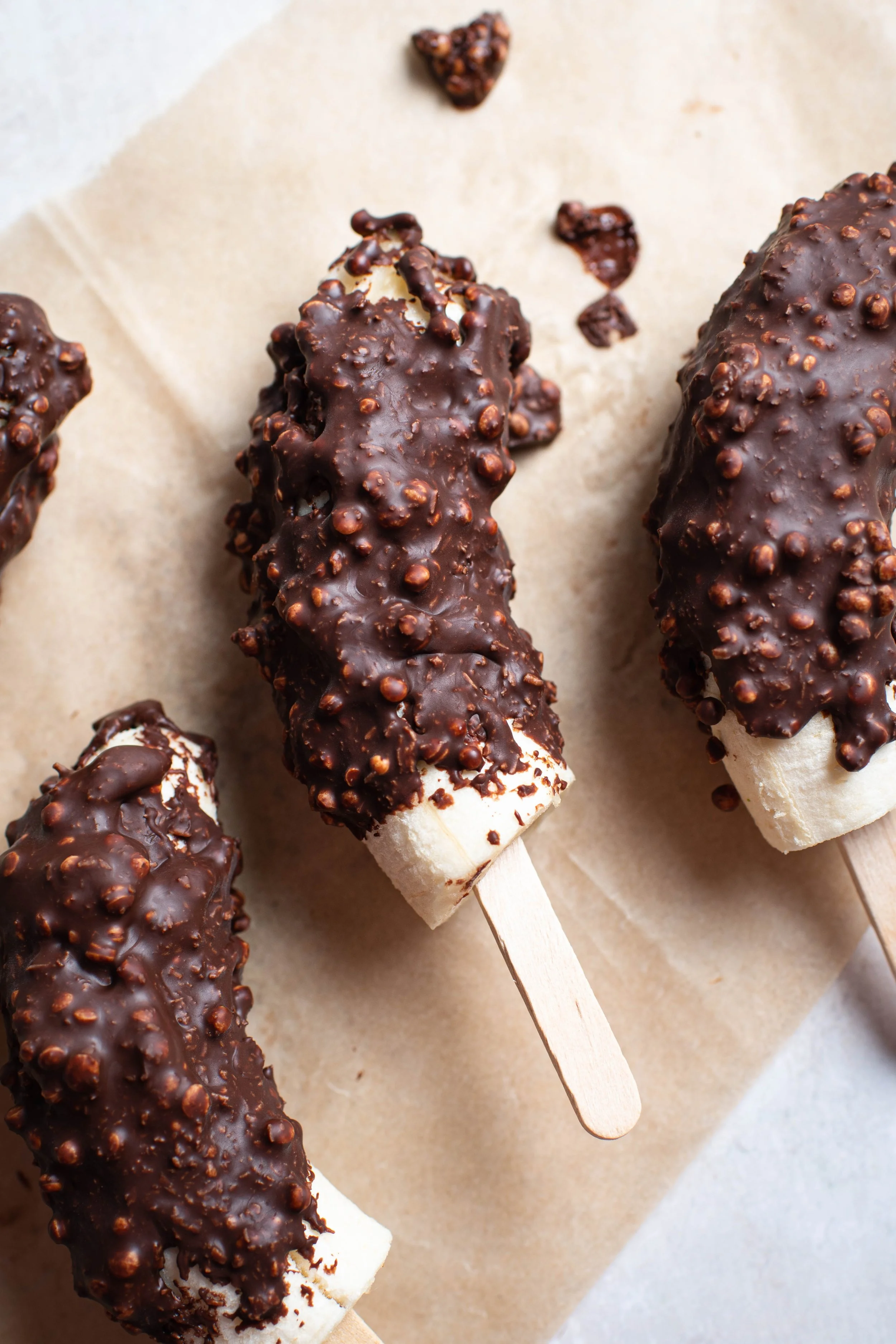 En enkel glass du snabbt slänger ihop om du har lite mogna bananer hemma! Fryst banan tillsammans med ett täcke av choklad är ju så magiskt gott!
