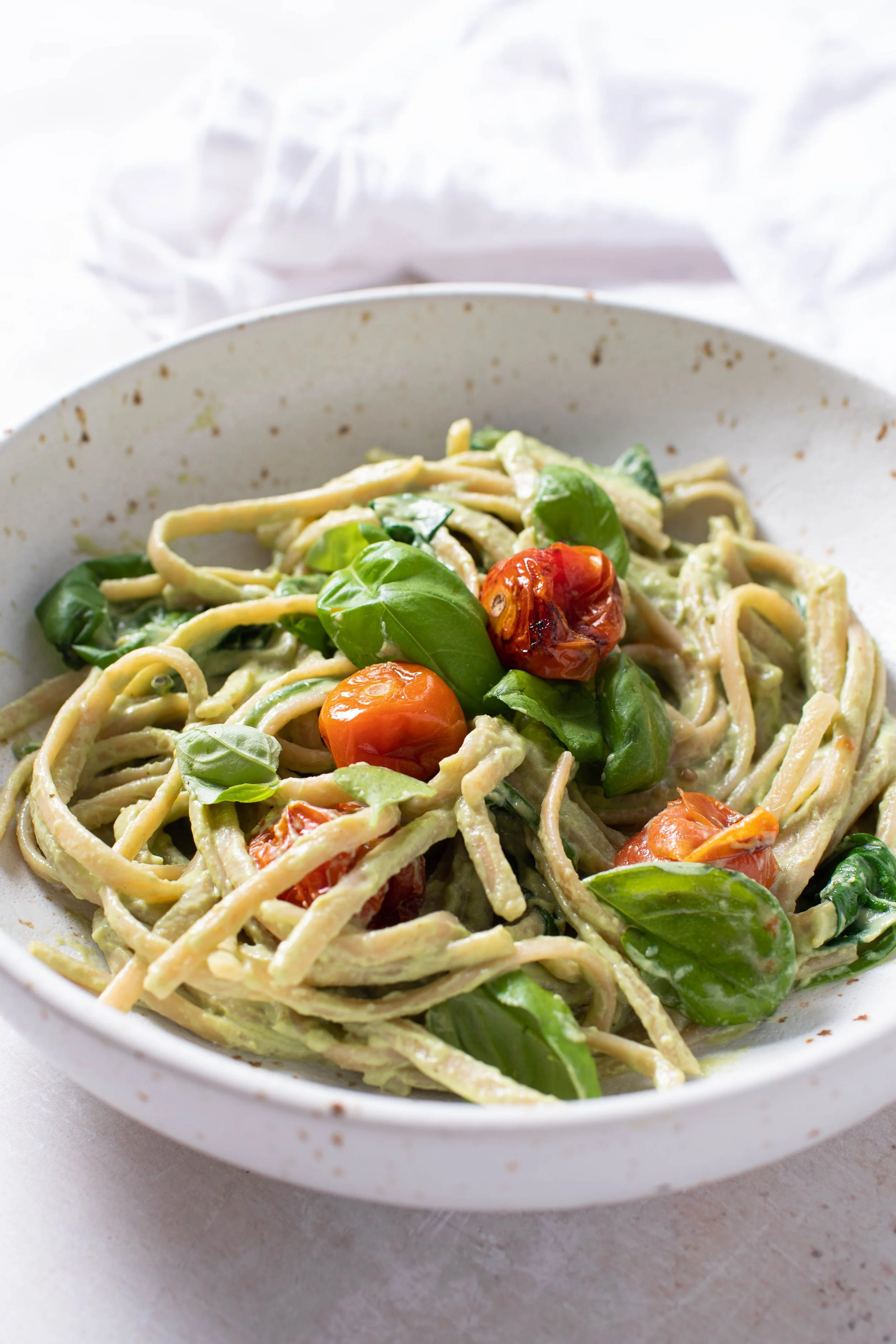 Enkel pasta med silkestofu som bas. Silkestofu är perfekt att ha som bas i en pastasås då den blir krämig och god.