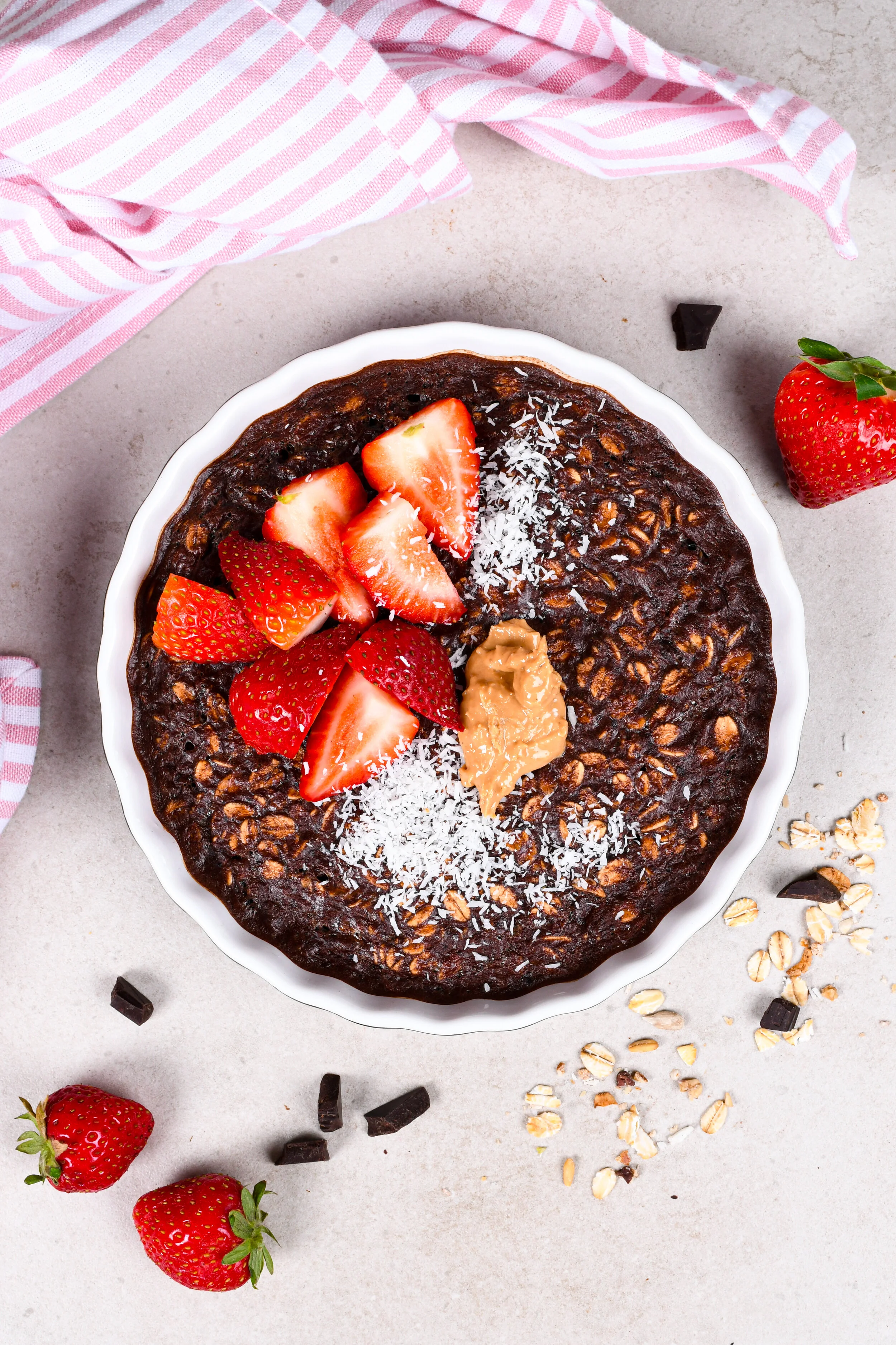 Ta ur gröten ur ugnen, toppa eventuellt med chokladknappar/hackad choklad.